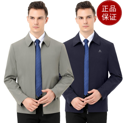 免费退换 新款正品桑蚕丝夹克男春秋薄款中老年爸爸免烫翻领茄克衫休闲外套反季促销特价