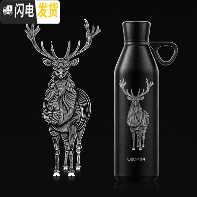 三维工匠手提保温杯 大容量户外旅行便携杯子600 磨砂黑600麋鹿