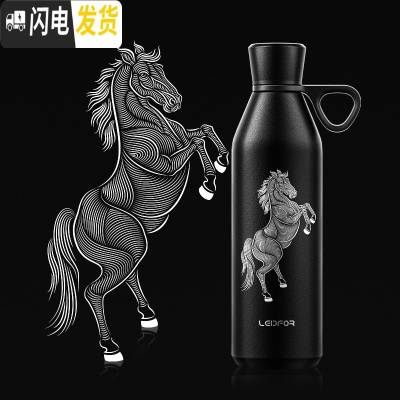 三维工匠手提保温杯 大容量户外旅行便携杯子600 磨砂黑600跃马