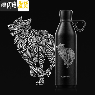 三维工匠手提保温杯 大容量户外旅行便携杯子600 磨砂黑600非洲雄狮