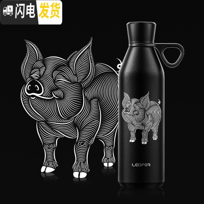 三维工匠手提保温杯 大容量户外旅行便携杯子600 磨砂黑600金猪