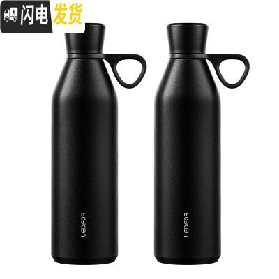 三维工匠手提保温杯 大容量户外旅行便携杯子600 磨砂黑600-2个