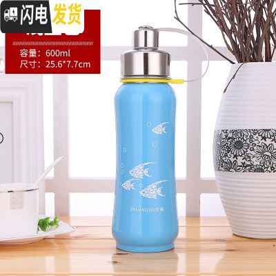 三维工匠304不锈钢大号保温杯大容量保温壶600太空壶800户外运动瓶1000 600蓝色