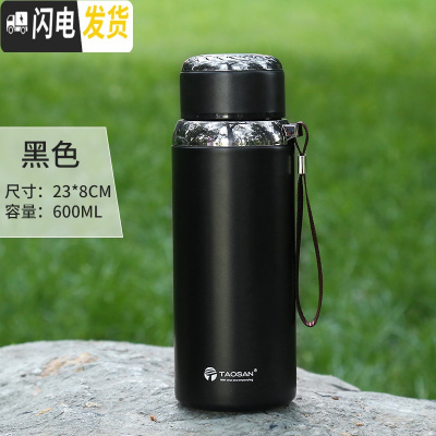 三维工匠304不锈钢保温杯男商务泡茶杯800 女便携大容量休闲运动壶600 黑色600送杯刷