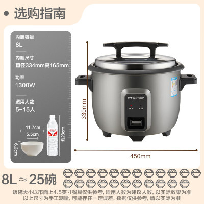 荣事达(Royalstar)电饭煲8升电饭锅8-10人食堂饭店酒店工地老式大电饭锅防干烧黑色煮饭锅8升RZ-80C