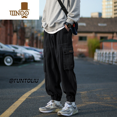 YANXU加绒裤子男工装大码韩版潮流ins宽松高街男士束脚运动裤C