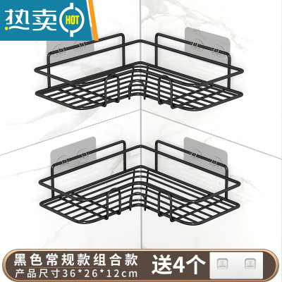 敬平卫生间浴室三角置物架子壁挂式免打孔厕所洗手间沐浴露转角收纳架 三角黑色+挂钩浴室置物架