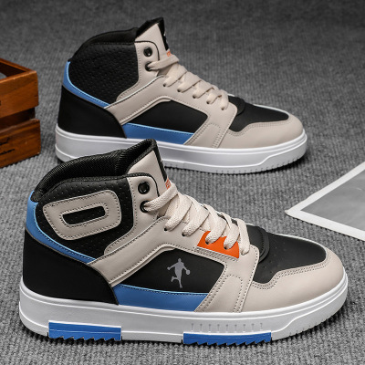 秋冬新款男士运动休闲中高帮篮球鞋时尚撞色拼接潮流运动鞋男