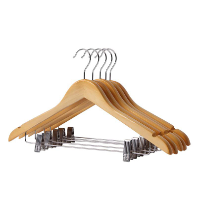 千里谷KLG-YJ06实木银圆钩带夹子款衣架5个/组(计价单位:组)原木色