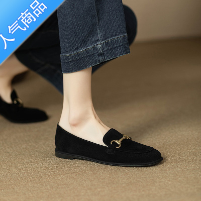 SUNTEK磨砂皮豆豆鞋2023春秋季新款乐福鞋女平底单鞋软皮软底小皮鞋
