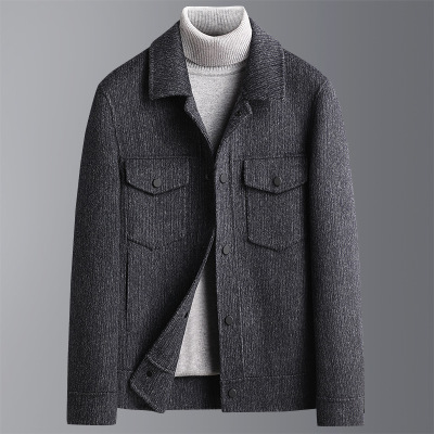 秋冬新款阿尔巴卡羊毛双面呢短款大衣男青年加厚休闲双面羊毛外套