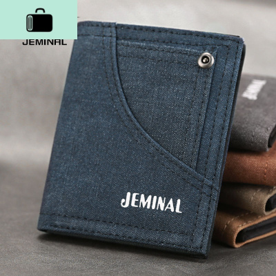 钱包男短款牛仔帆布纹青年超薄男士皮夹子时尚学生日韩钱夹男潮NEW LAKE男士腰包