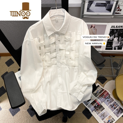 YANXU秋季ins港风长袖衬衫男士潮流感日系提花情侣堕感bf翻领衬衣
