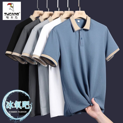 啄木鸟 冰丝短袖t恤男士polo衫夏季衬衫速干翻领休闲半袖中年爸爸