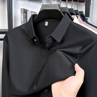春秋季衬衫男士无痕提花长袖轻奢翻领免烫新款休闲中年爸爸衬衣
