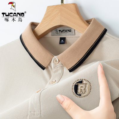 啄木鸟珠地棉长袖t恤男春季新款宽松休闲商务中年翻领POLO衫秋衣