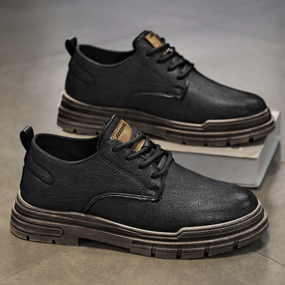 皮鞋男鞋秋季商务正装英伦风休闲男士平底增高百搭复古低帮马丁靴