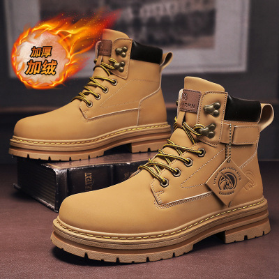 秋冬新款马丁靴加绒高帮英伦风百搭增高男士棉靴大复古户外男靴