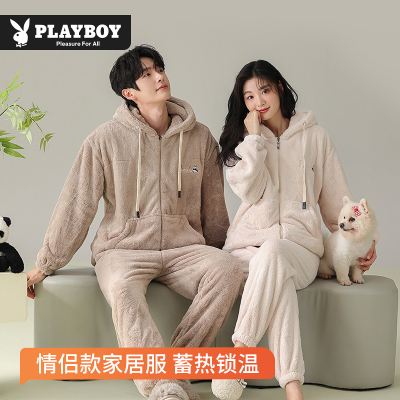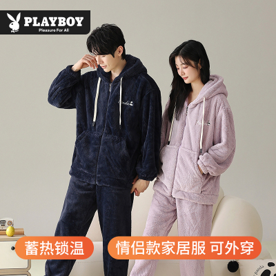 花花公子情侣款睡衣男女秋冬季加绒保暖可外穿休闲长袖长裤家居服