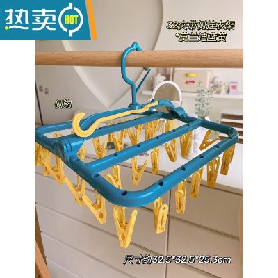 敬平晾衣架多夹子宿舍家用挂衣服内衣内裤多功能折叠收纳器晒袜子架 32夹可折叠晾晒衣架*蓝黄 1个衣夹