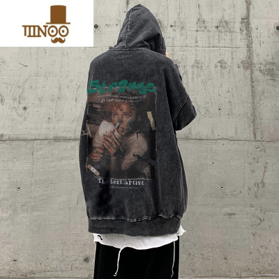 YANXU卫衣男美式复古水洗做旧宽松高街嘻哈休闲连帽衫外套男款