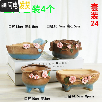 三维工匠 多肉花盆粗陶室内肉肉植物盆栽大口径陶瓷花盆批发 套装24 中等花盆容器