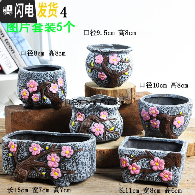 三维工匠多肉花盆陶瓷小号植物盆栽创意个性北欧简约粗陶透气 套装1222-图示五个 中等花盆容器