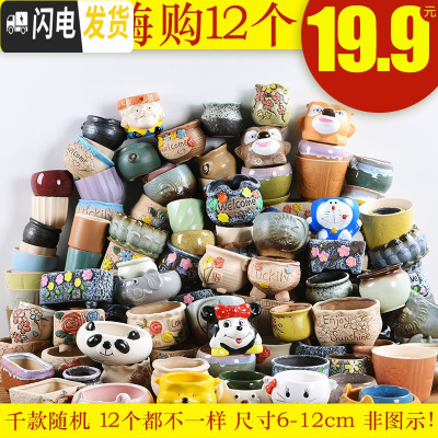 三维工匠多肉花盆陶瓷小号植物盆栽创意个性北欧简约粗陶透气 套装5916-随机12个 中等花盆容器