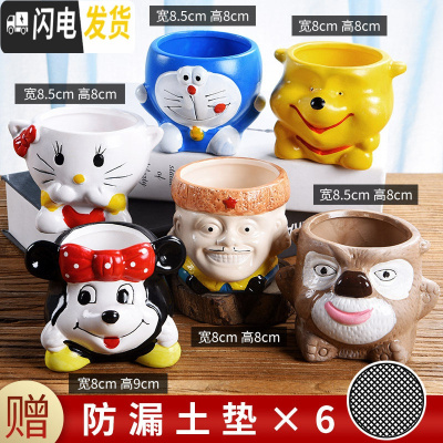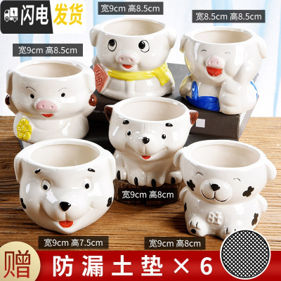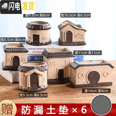 三维工匠多肉花盆陶瓷小号植物盆栽创意个性北欧简约粗陶透气 套装1029-图示六个 中等花盆容器