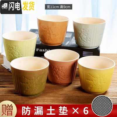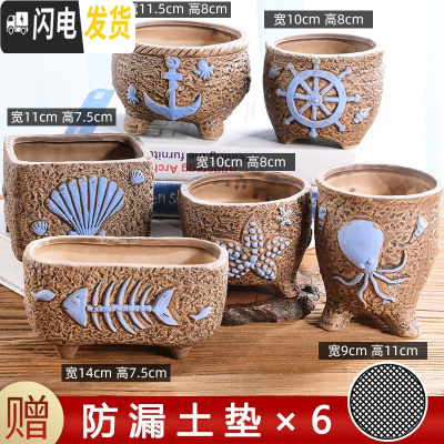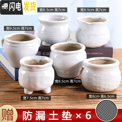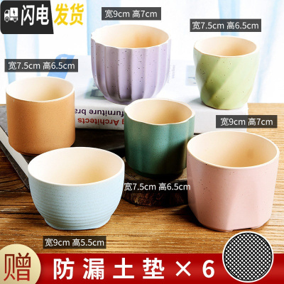 三维工匠多肉花盆陶瓷小号植物盆栽创意个性北欧简约粗陶透气 套装1146-图示六个 中等花盆容器