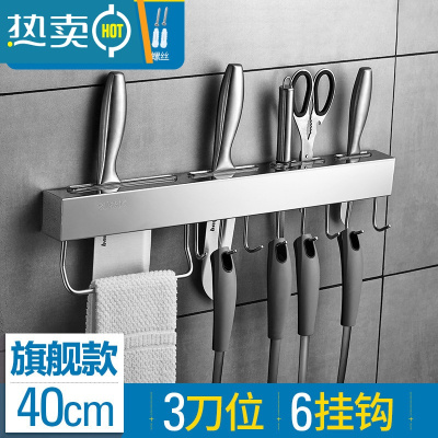 敬平免打孔304不锈钢刀架 厨房挂件可移动挂钩壁挂厨房收纳架带毛巾杆