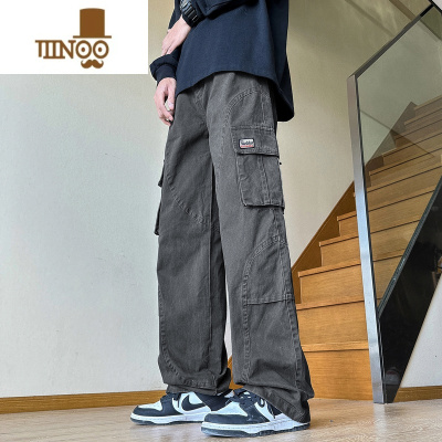 YANXU工装休闲裤男生新款2023美式复古街头宽松直筒水洗做旧百搭长裤潮