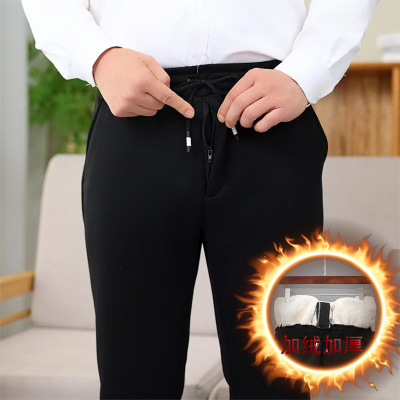 老年外穿宽松爸爸男长裤秋冬加绒裤子男松紧裤男士休闲裤加绒加厚