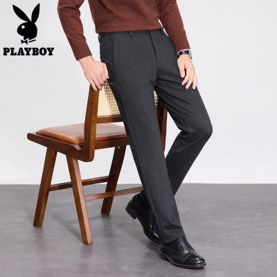 [高端保暖]花花公子羊毛西裤男款灰色直筒休闲裤微弹针织长裤子