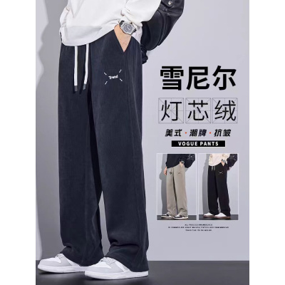 男士休闲裤春秋新款潮流运动青年宽松直筒灯芯绒男裤商场同款