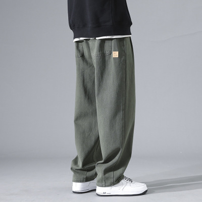 牛仔裤男士秋季新款复古直筒长裤潮牌宽松加绒款休闲裤子男生