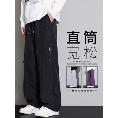 工装裤男士春秋款宽松直筒秋季新款垂感户外登山刺绣伞兵休闲裤子