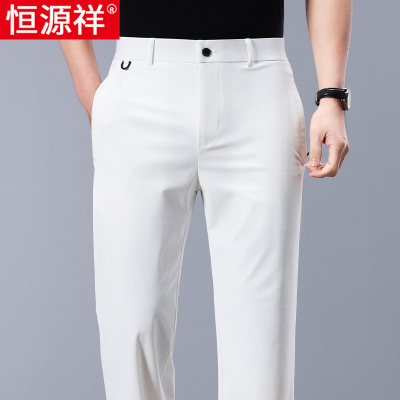 恒源祥2025夏季冰丝超薄款西裤男士休闲裤商务宽松白色运动长裤子