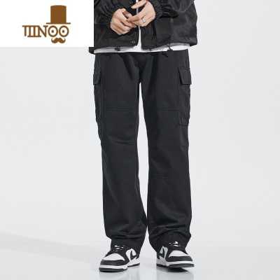 YANXUHomePanda秋季宽松直筒休闲裤男黑色美式阔腿工装裤日系潮牌