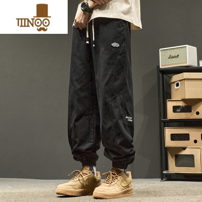 YANXU休闲裤子男款美式高街复古潮牌机能束脚裤男生黑色工装裤秋季