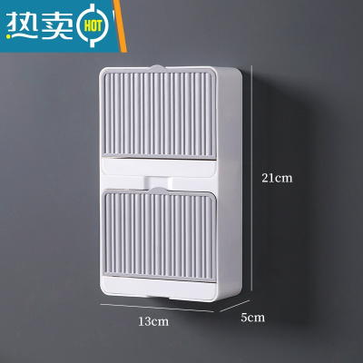 敬平肥皂盒免打孔带盖香皂盒沥水双格大号卫生间翻盖学生宿舍洗衣皂盒 [竖款]大号双格灰色