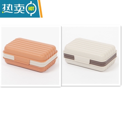 敬平肥皂盒旅行便携式香皂盒带盖卫生间创意沥水锁扣防水带卡扣翻盖 桔色+灰白