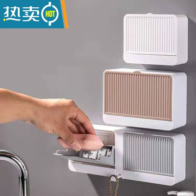 敬平创意肥皂盒带盖香皂盒壁挂双格沥水免打孔翻盖皂盒卫生间洗衣皂盒 单双组合[颜色可备注]