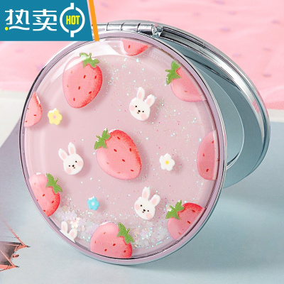 敬平韩国创意流沙镜化妆镜迷你翻盖随身便携式小镜子可爱少女心双面镜便携式用镜 白兔草莓