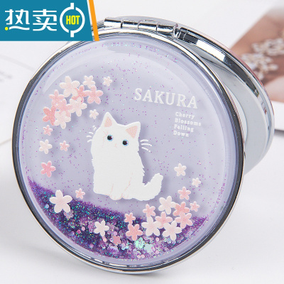 敬平韩国创意流沙镜化妆镜迷你翻盖随身便携式小镜子可爱少女心双面镜便携式用镜 樱花猫
