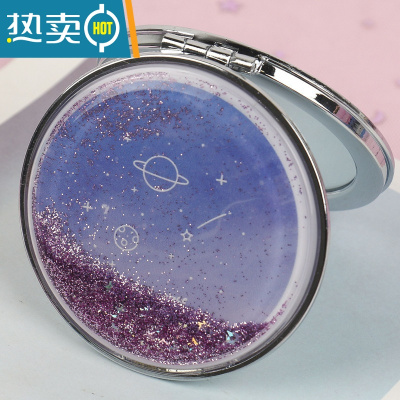敬平韩国创意流沙镜化妆镜迷你翻盖随身便携式小镜子可爱少女心双面镜便携式用镜 紫星空