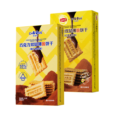 巧兮兮(榛子黑巧、红茶黑巧味)巧克力双层独立包装薄脆饼干115g*2盒装