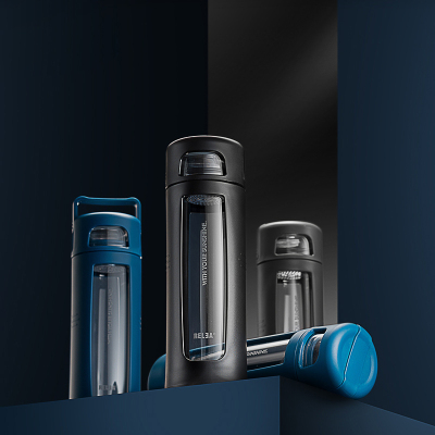 生物 RELEA 玻璃 杯耐热玻璃杯塑玻双层随手水杯创意带盖杯子男女车载透明过滤茶杯