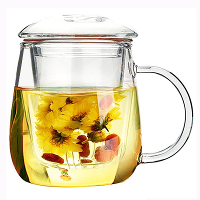 物生物(RELEA)君子杯创意玻璃杯不保温 带盖透明办公过滤茶杯男士水杯随手杯 花茶杯子420ml