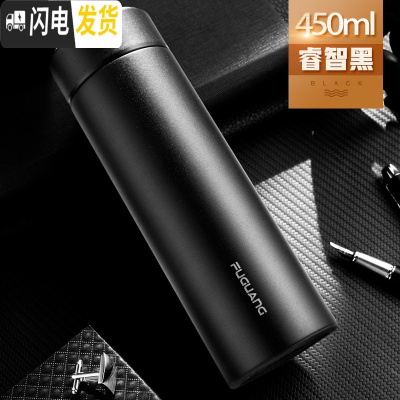 三维工匠保温杯男女便携大容量不锈钢水杯子定制刻字商务男水杯泡茶杯 黑色450